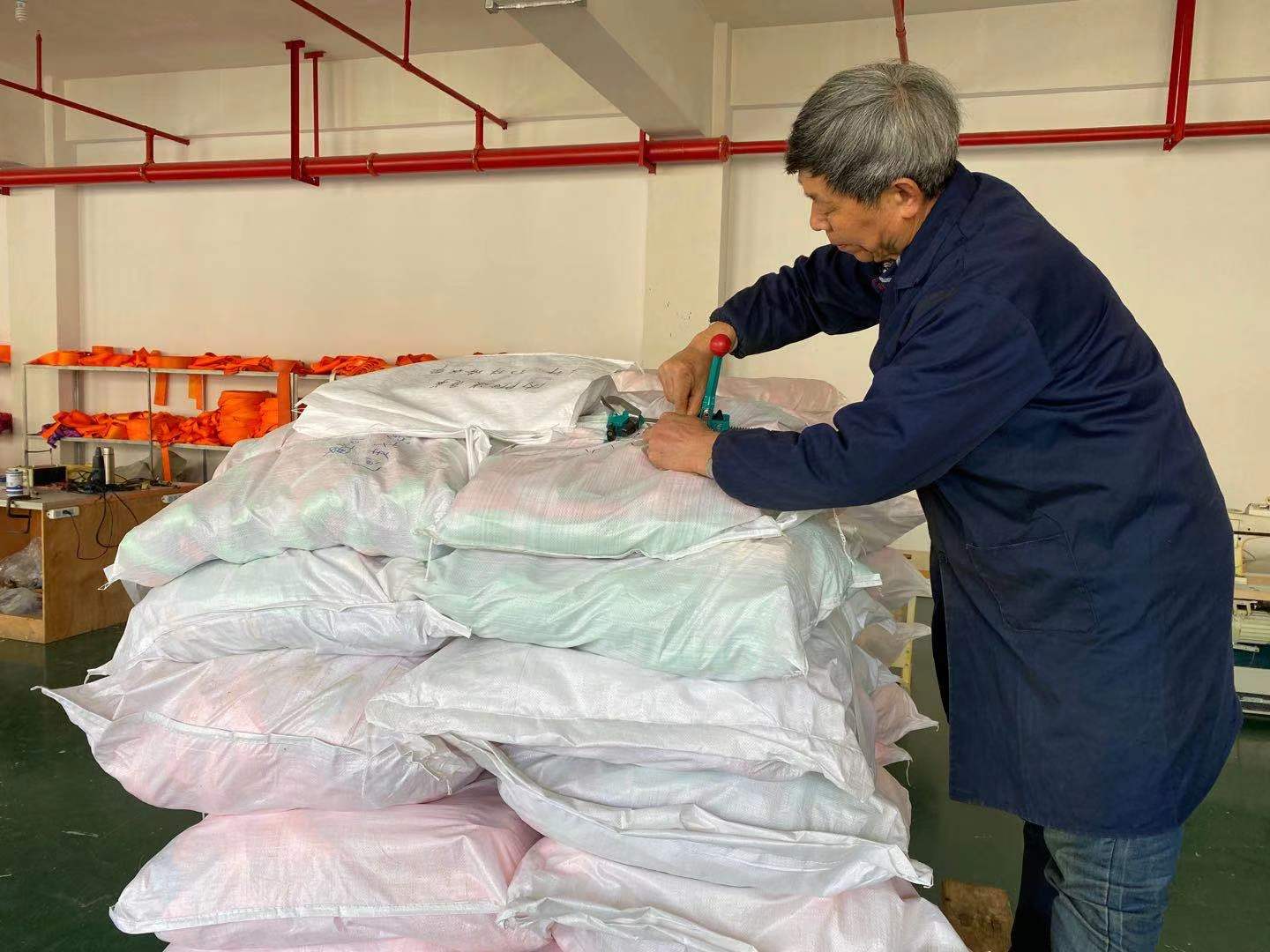 圖二為工人師傅認真打包柔性吊帶和扁平吊裝帶,考慮到發貨地較遠,所以在打包的細節上更加用心,確保客戶在按時收到貨的同時,看到貨更舒心。